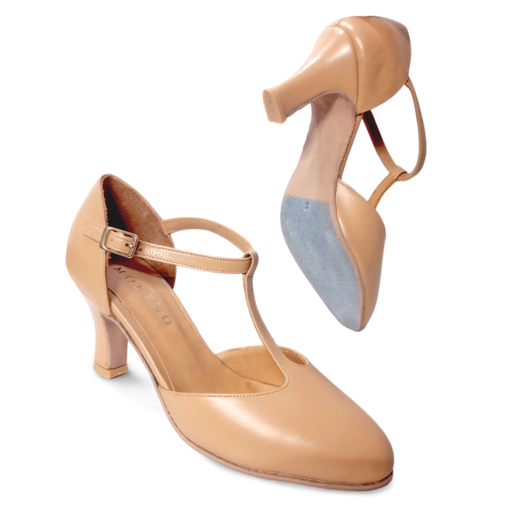 Los zapatos de baile Barcelona, confeccionados con cuero vacuno de primera calidad y forro interno también de cuero, son la elección perfecta para las amantes del baile. Con un taco de 6,5 cm, los Barcelona te ofrecen una combinación de altura y estabilidad ideal mientras te deslizas por la pista. Vienen con suela de cromo que permite un movimiento suave y seguro, evitando resbalones. Además, la tira en "T" garantiza un agarre excepcional. Este modelo se realiza con una horma ancha, perfecta para que tus pies se sientan cómodos y seguros al momento de bailar.